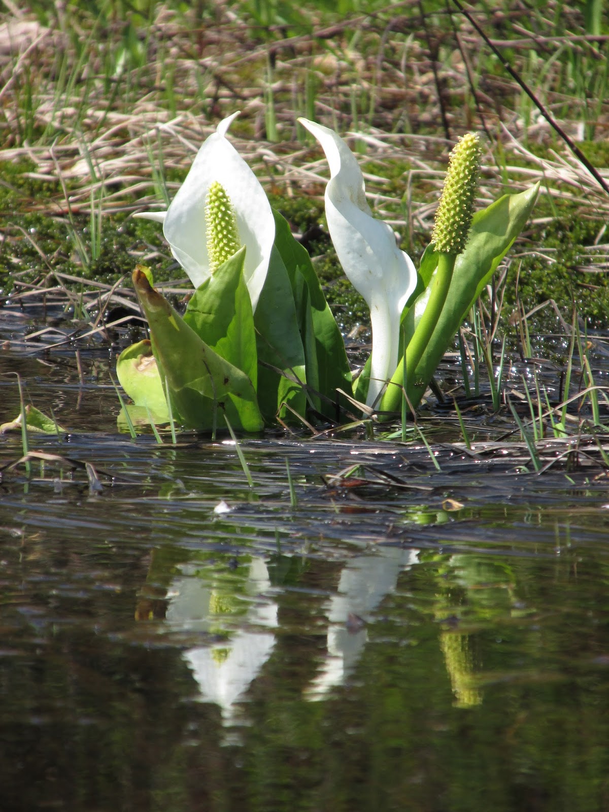 小さな池に咲くミズバショウ